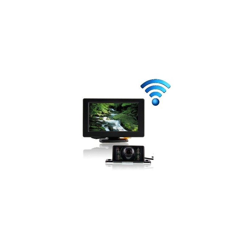 Kit compuesto por Camara de marcha atras LED con visión nocturna resistente al agua y pantalla LCD de 4,3 pulgadas a color. Sistema inalambrico sin necesidad de cables. Distancia de funcionamiento 50 metros. Kit universal valido para coches, furgonetas, camiones, etc. Facil Instalación. Incluye camara marcha atras LED con vision nocturna, pantalla LCD, cable RCA, emisor inalambrico RCA, receptor inalambrico RCA y manuales de usuario.