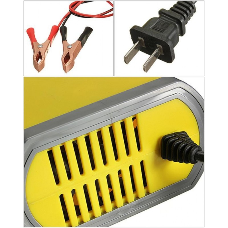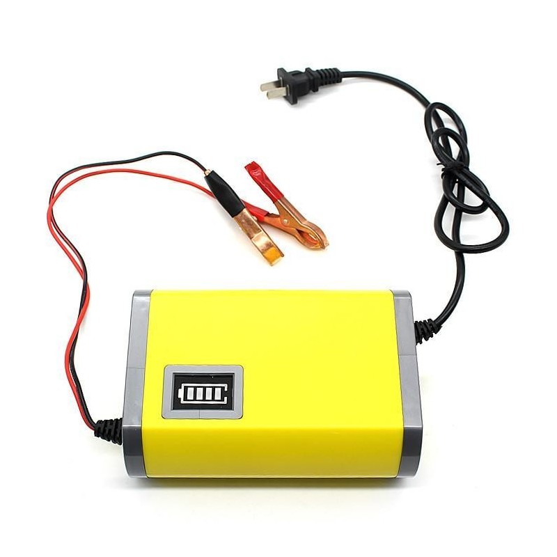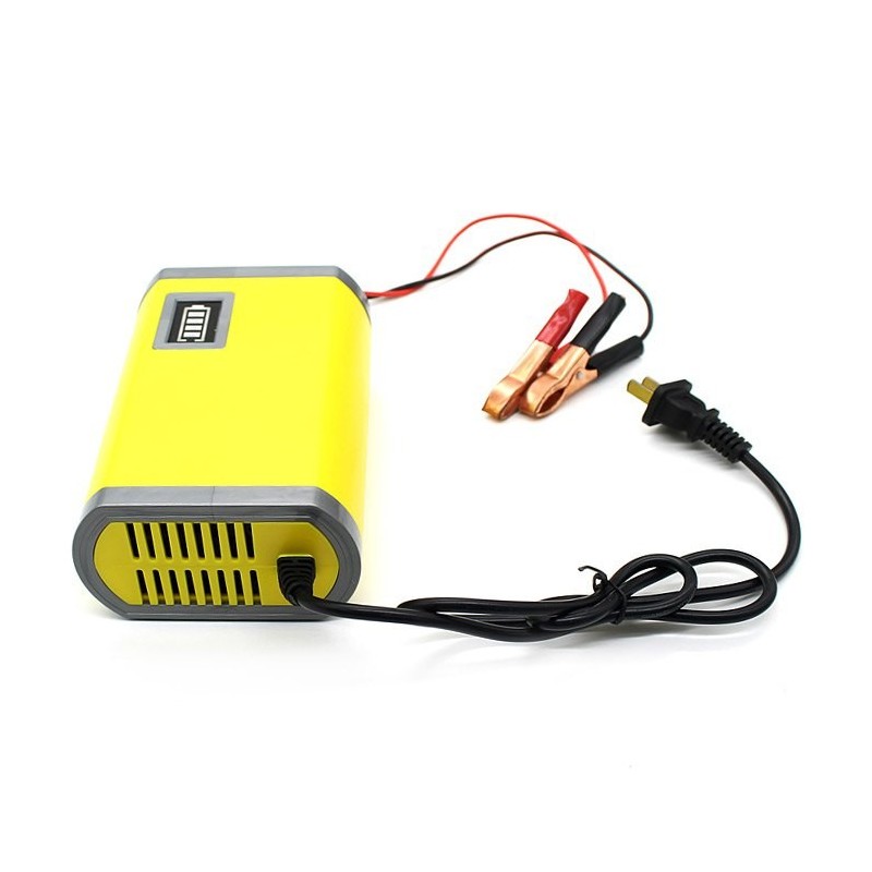 Cargador de bateria para vehiculos. Transforma la corriente alterna de la red eléctrica (220v) a la corriente continua de su bateria (12v) permitiendo cargarla facilmente. Funciona a 12v con una potencia de 6A. Incorpora un indicador de luz para saber el estado de la carga de la bateria. Modelo universal compatible con todas las marcas de vehiculos. Valido para coches, motos, camiones o cualquier otro vehiculo con bateria de 12v. Incluye cargador de bateria, pinzas y cable de corriente.