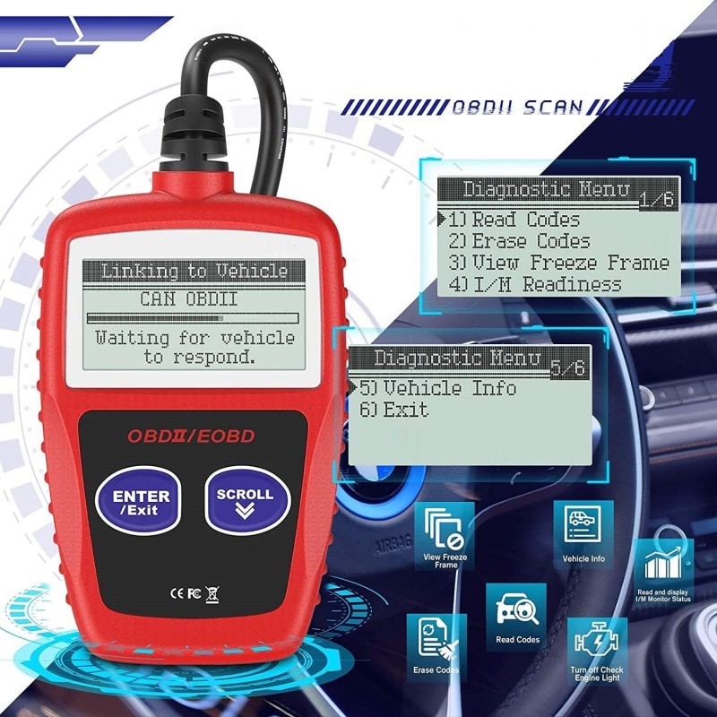 Maquina para realizar diagnosis y borrado de averias de coche con idioma español. Dispone de pantalla LCD. Valida para cualquier marca de coche con protocolo OBD2/CAN/EOBD a partir del año 1996. Valida para realizar lectura y borrado de averias de motor del vehiculo en general, prueba del sensor O2, ver datos congelados y lectura de parametros de informacion general del vehiculo. No necesita bateria ya que obtiene la corriente del vehiculo para funcionar. Valida para vehiculos europeos, estadounidenses y asiaticos. Modelo multimarca valido para todas las marcas de coches.