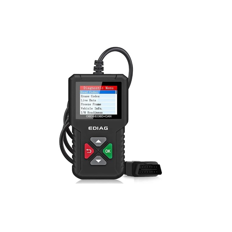 Maquina de diagnosis profesional multimarca valida para cualquier marca de coche con protocolos OBDII/EOBD/CAN. Permite realizar diagnostico y borrado de averias electronicas del vehiculo en general, lectura de parametros de informacion general del vehiculo, pruba del sesor O2, acceso a datos congelados, prueba EVAP, prueba del monitor a bordo, busqueda de DTC entre otras muchas funciones. Compatible con vehiculos europeos, estadounidenses y asiaticos. Dispone de 9 idiomas diferentes entre los cuales se incluye el español. Modelo actualizable gratis por USB. Facil funcionamiento.