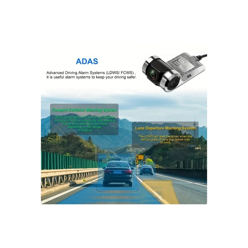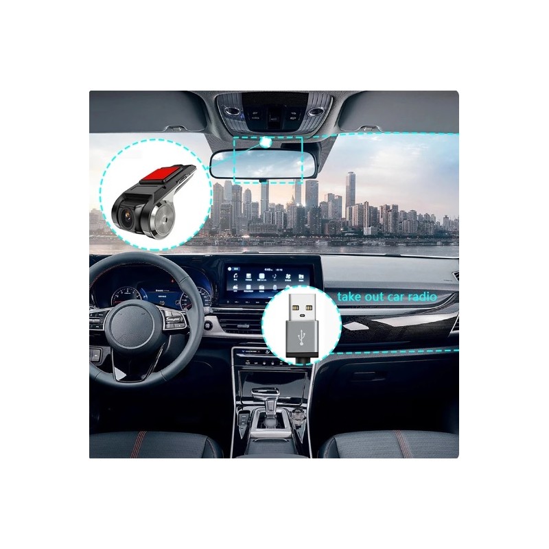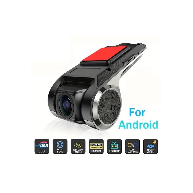 Grabadora DVR dashcam con resolucion full HD 1080p. Graba videos a color con sonido y hace fotos a color con resolucion full HD 1080p. Lente giratoria con angulo de vision de 170 grados. Dispone de vision nocturna para vision nitida en baja luminosidad. Compatible con tarjeta de memoria micro SD hasta 32Gb (no incluida). Cuenta con un sistema automatico de advertencias para distancia de seguridad, cambios de carril y G-sensor para bloque de grabacion en caso de detectar colision del vehiculo. Compatible con radios y pantallas Android mediante conexion USB dispone de APK para instalacion. Incluye grabadora DVR dashcam, cable y manual de usuario.