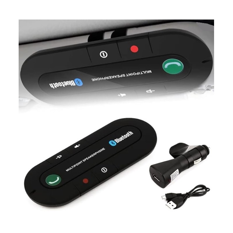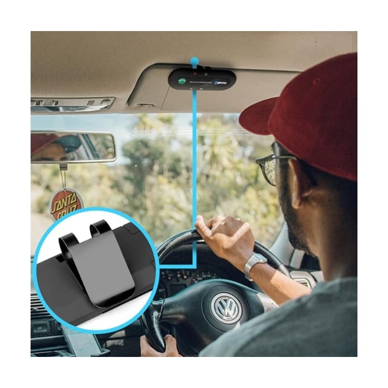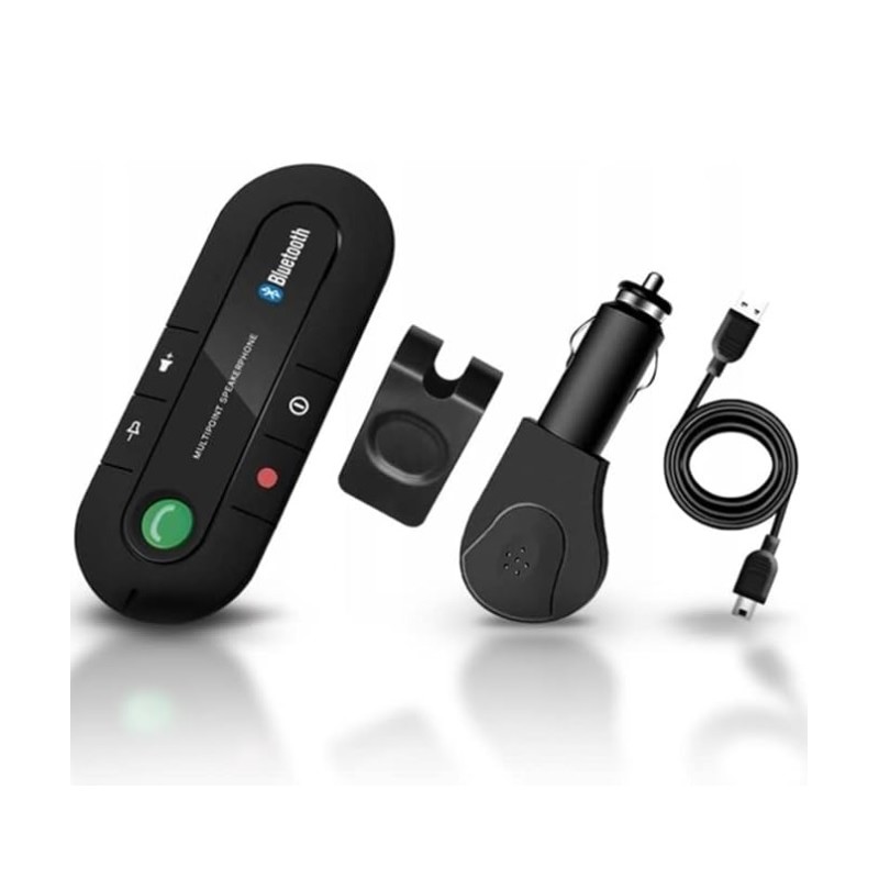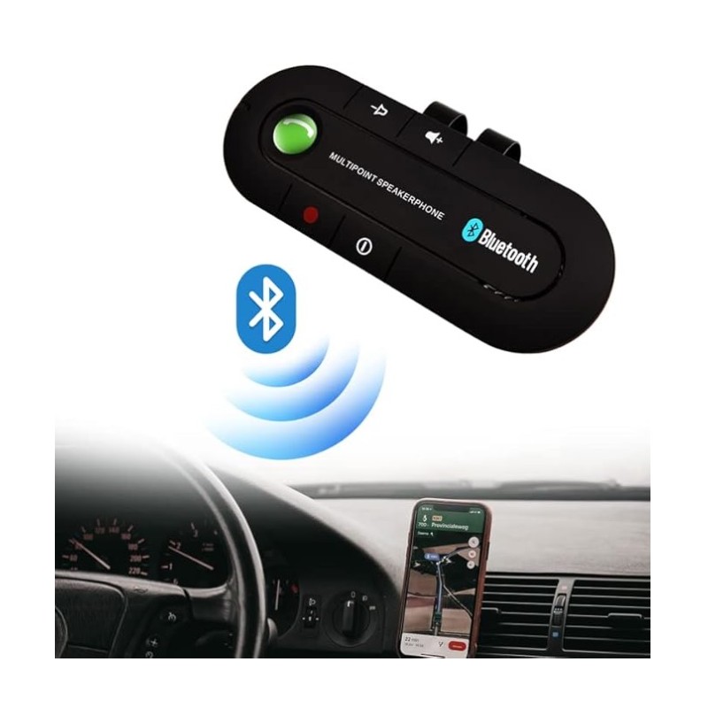 Manos libre para coche por bluetooth con microfono y altavoz integrado. Permite poder hacer y recibir llamadas telefonicas de manera automatica a traves de bluetooth sin necesidad de tener el telefono movil en la mano. Puede reproducir musica a traves de bluetooth desde su telefono movil. Bateria recargable por USB de larga autonomia. Compatible con Siri. Valido para Iphone y Android. Tecnologia bluetooth 5.0. Incluye dispositivo manos libres por bluetooth, cargador de mechero, soporte para colocarlo, cable USB y manual de usuario.