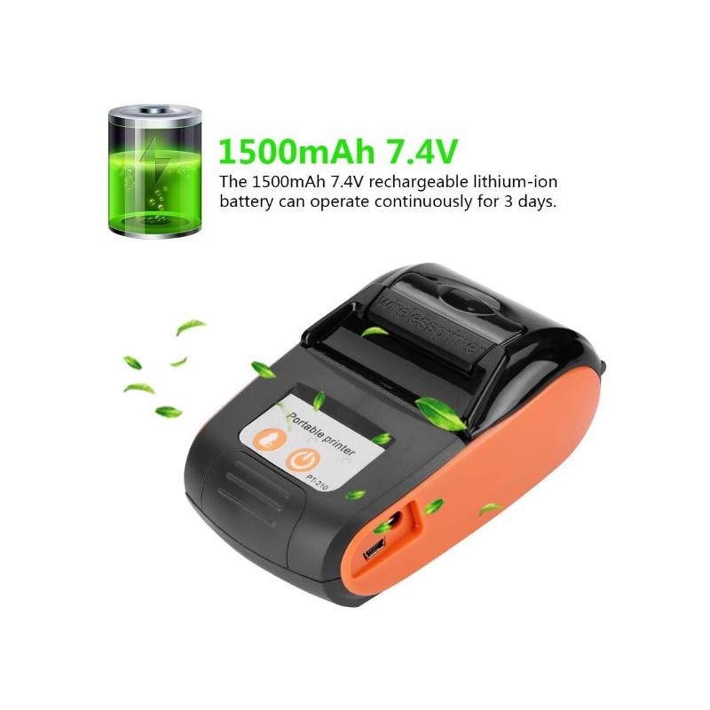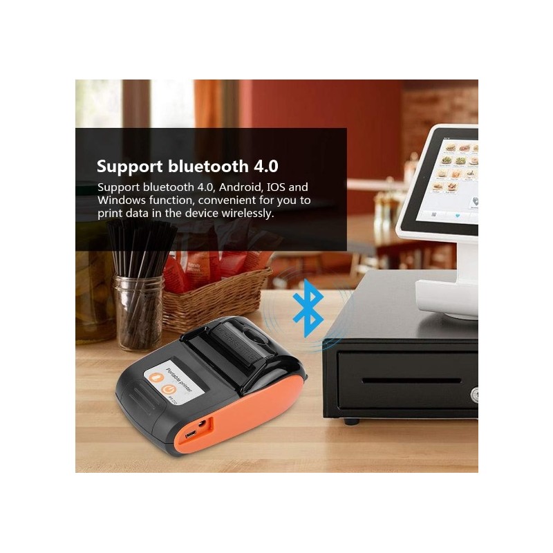 Impresora termica de tickets inalambrica por bluetooth. Dispone de bateria recargable de 1500 mAh con una autonomia de 3 dias aproximadamente. Modelo portable con conexion por bluetooth 4.0 para usarla sin necesidad de cables. Funciona con papel termico standard de 58mm de ancho sin necesidad de cartuchos de tinta. Compatible con Android, IOS y Windows. Incluye impresora termica, cargador, funda, cable USB y manual de usuario.