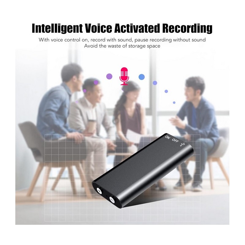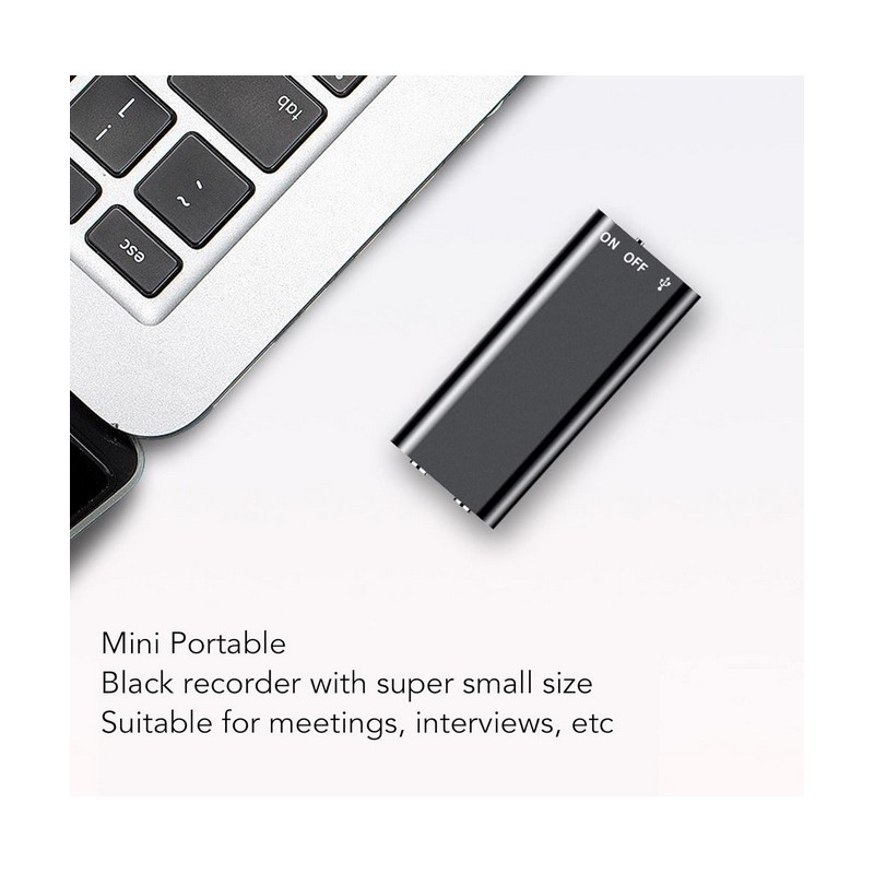 Grabadora de voz y audio dictafono con 16gb de memoria interna. Bateria recargable por USB con autonomia de grabacion continua durante 8 horas. Funcion reproducción rápida hacia adelante y hacia atrás. Funcion de activacion automatica de grabacion por voz. Funcion de comienzo de grabacion con una pulsacion de boton. Formatos compatibles: MP3, WMA, WAV. Recomendado para grabar conversaciones, entrevistas, reuniones, conferencias, etc. Incluye grabadora, auriculares, cable USB y manual de usuario.