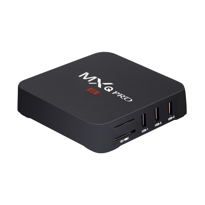 Smart box Android TV MXQ PRO 4k Ultra HD. Sistema Android 5.1 Quad Core 1Gb RAM 8Gb ROM con soporte KODI. Este dispositivo permite convertir su television en un Android TV permitiendo usar en ella el sistema PlayStore de descarga de aplicaciones y juegos Android, tambien le permite navegar por internet por lo que podra descargar y ver peliculas, musica, youtube, skype, facebook, google, gmail, entre otras muchas funciones. Compatible con mas de 1.000 canales de television diferentes (peliculas online, partidos de futbol, canales extranjeros, canales de pago, etc.). Dispone de conexion wifi, 4 puertos USB, conexion HDMI 2.0, lector de tarjetas de memoria. Resolución 4K Ultra HD. Idioma español. Incluye smart box Android TV, mando a distancia, cable HDMI y manual de usuario.