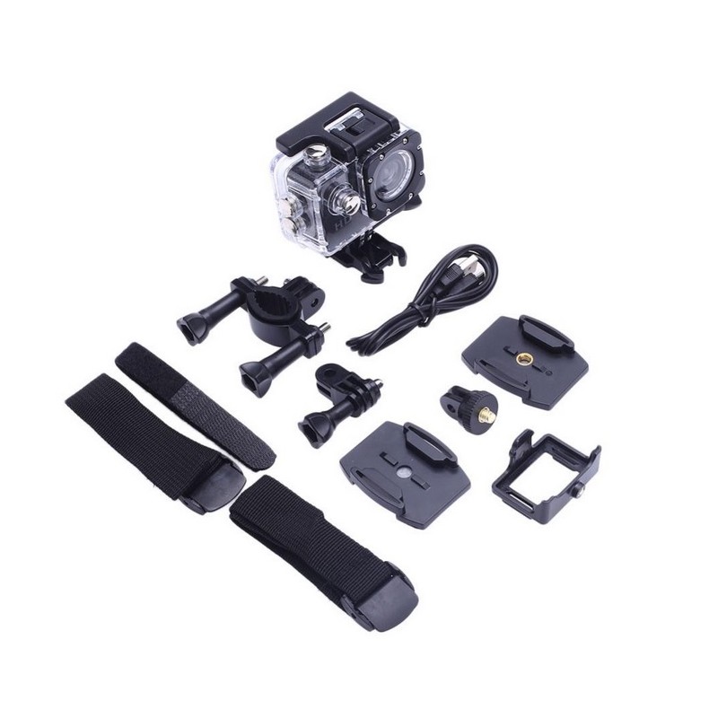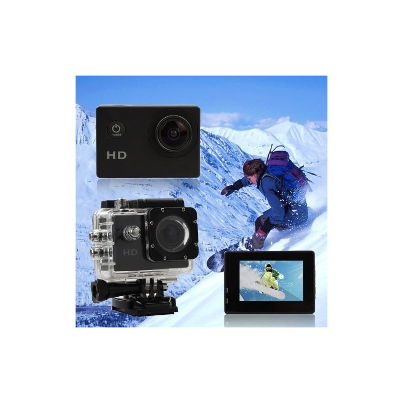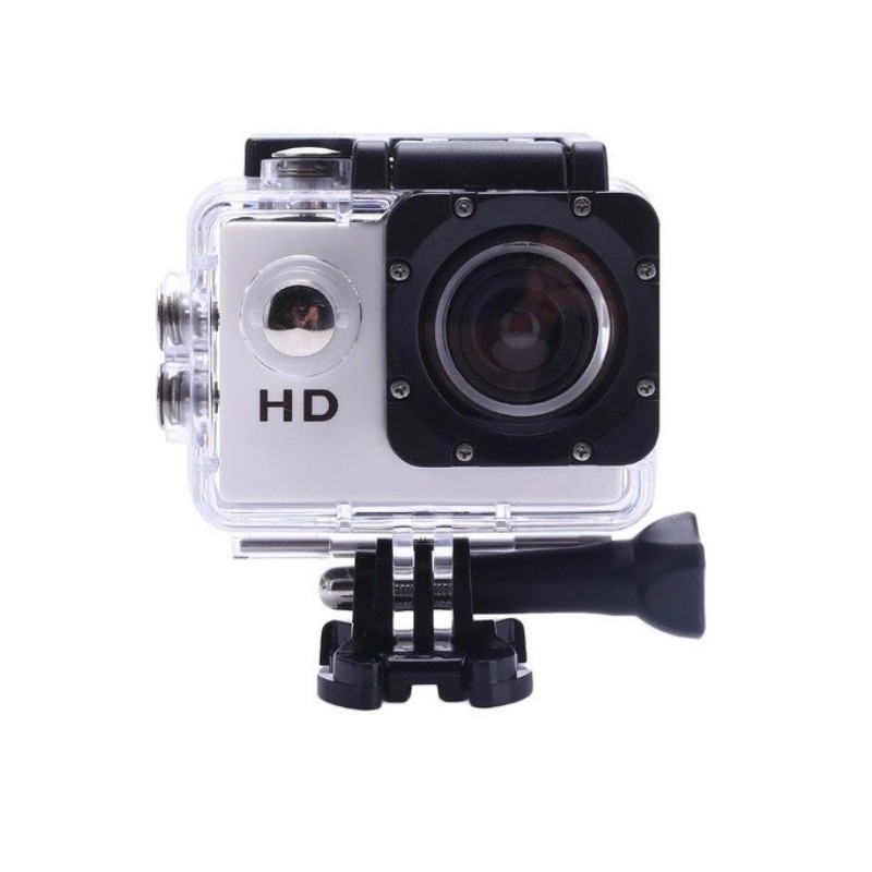 Camara deportiva acuatica resistente al agua. Graba videos a color con sonido y hace fotos a color en resolucion Full HD 1080p 6 Megapixeles. Acepta tarjeta micro SD hasta 32 Gb. Pantalla tactil LCD de 2 pulgadas. Angulo de vision 90 grados. Valida de camara acuatica para hacer fotos y video bajo agua, en la nieve, actividades deportivas, etc. Sumergible hasta 30 metros. Incluye Camara full HD 1080p, funda acuatica, soportes varios, arnes, cable USB, bateria, cargador y manual de usuario. Autonomia de bateria 3 horas aproximadamente. Colores disponibles: negro, blanco o rosa. Se carga por USB.