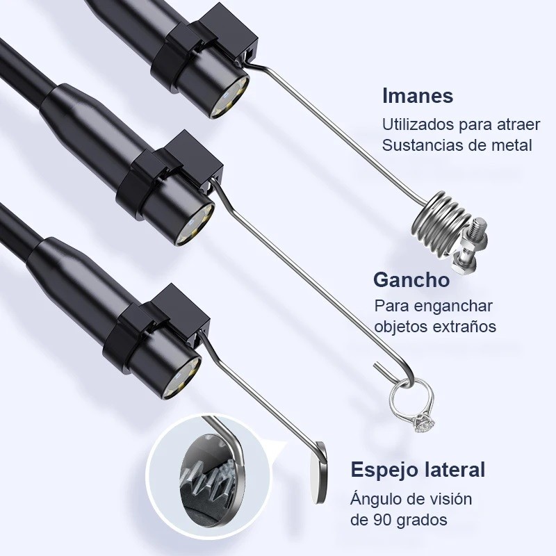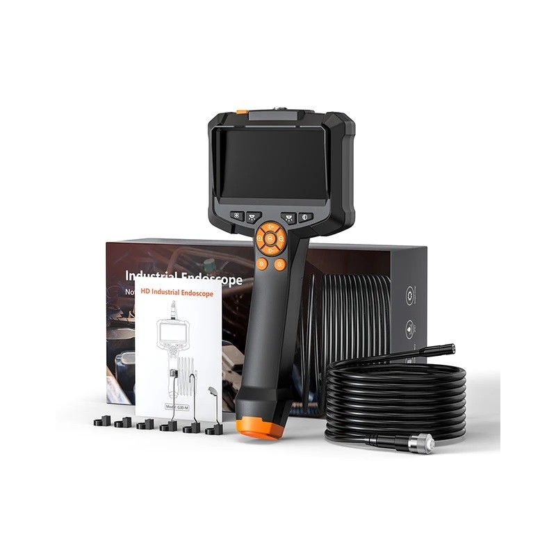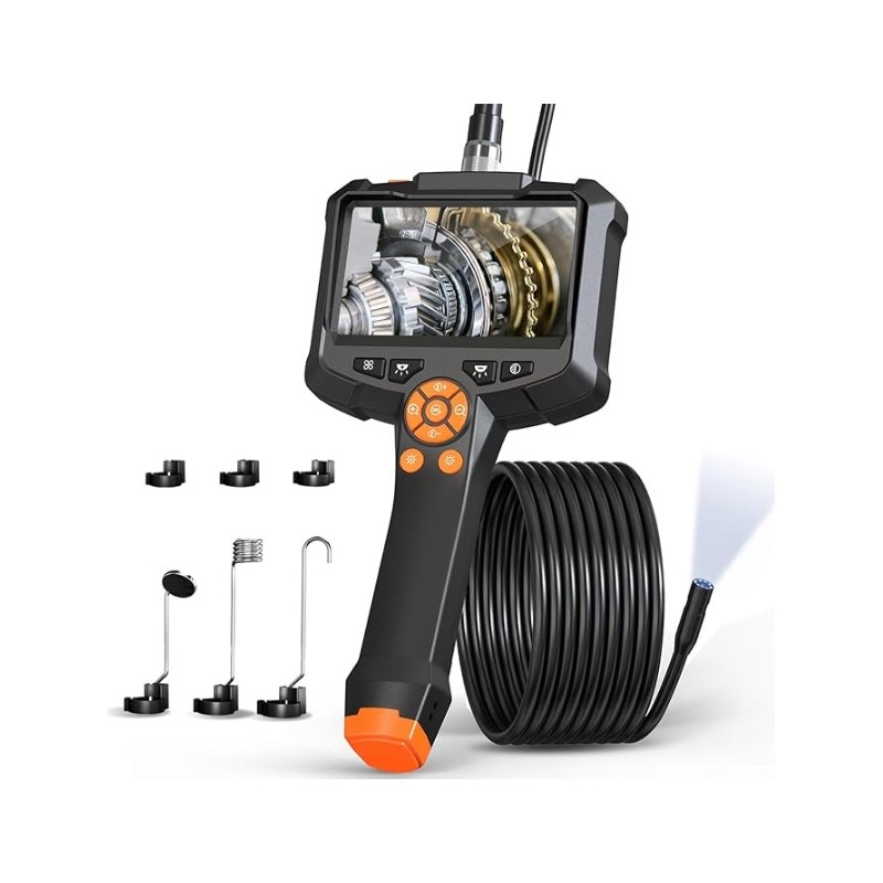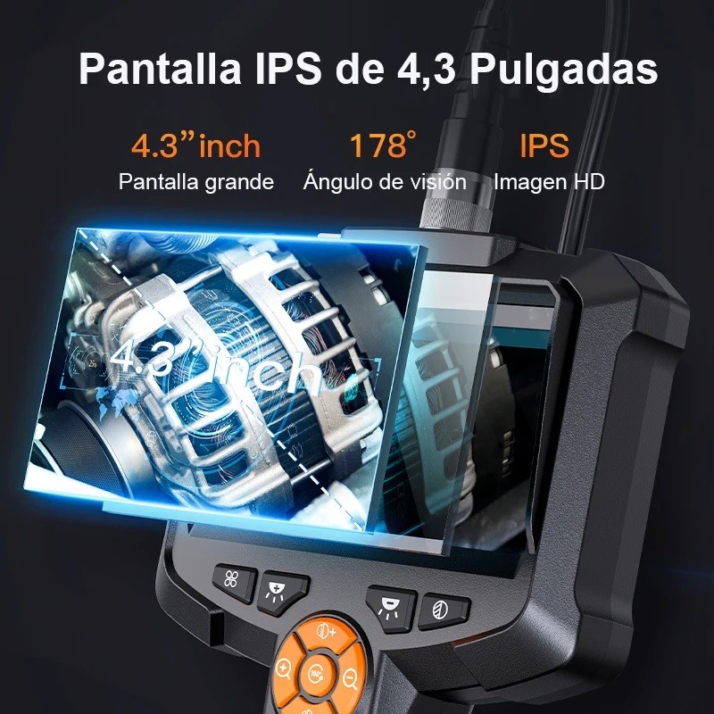 Camara endoscopio boroscopio profesional de 5 metros de longitud con pantalla IPS. Dispone de una pantalla de 4,3 pulgadas IPS incorporada con alta resolucion full HD 1920 x 1080p a color. Cable impermeable con proteccion IP67 para sumergirlo en agua. Dispone de 8 LED con brillo ajustable para vision nitida en lugares de baja luminosidad. Longitud del cable 5 metros con camara de 8mm. Tiene bateria recargable de 2000 mAH de larga duracion. Incluye camara endoscopio boroscopio profesional con pantalla y accesorios.