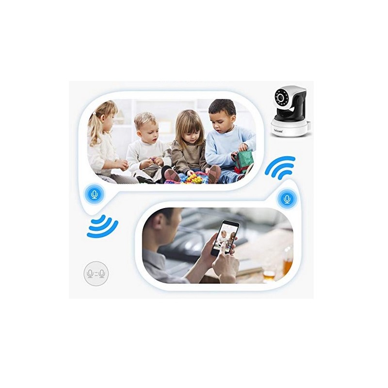 Camara IP wifi con vision nocturna por infrarrojos. Resolucion Full HD a color. Alimentacion 12V. Detección de movimiento con notificaciones. Tecnologia P2P. Acepta micro SD hasta 128Gb. Giros de la camara y enfoques controlados desde la APP. Dispone de altavoz y microfono por lo que puede mantener una conversacion con la persona que esta siendo grabada por la camara a traves de la aplicacion movil. Con esta camara podra controlar su casa, local, negocio u oficina en todo momento a tiempo real desde su movil, tablet o PC. Dispone de APP. Incluye camara IP wifi, cable ethernet, soporte, tornillos, adaptador de corriente y manual. Instalación fácil sin necesidad de cables. Compatible con Windows, Linux, Mac, Android y Apple. Este articulo tiene un plazo de entrega de 3 a 5 dias laborales.