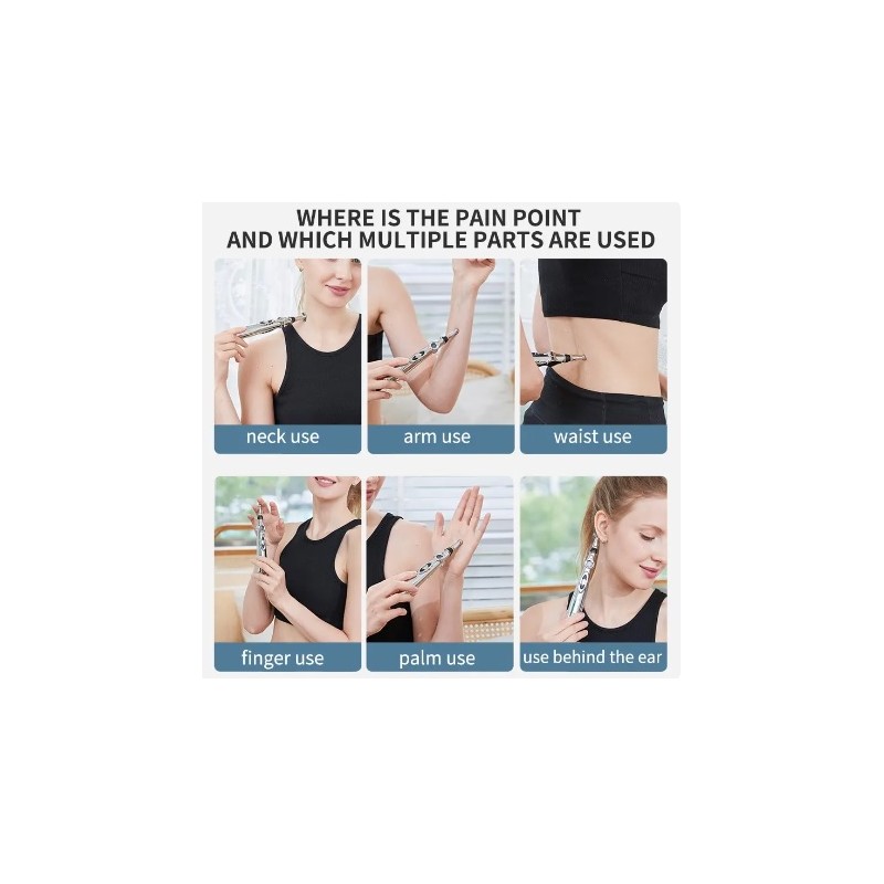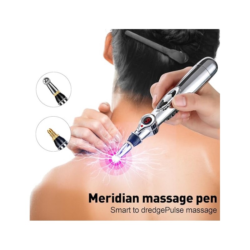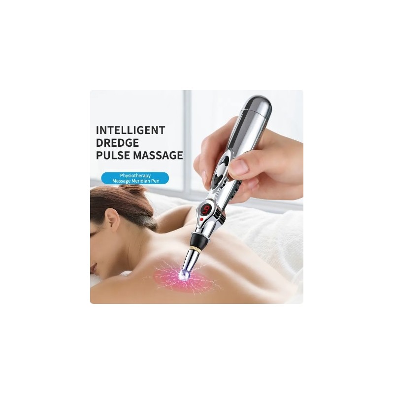 Lapiz de acupuntura masajeador por estimulos electroestaticos profesional. Se utiliza para aliviar todo tipo de dolores vertebrales, cervicales, musculares, de articulaciones, contracturas etc. Dispone de varios niveles para regular la intensidad de la potencia. Funciona con una bateria AA. Totalmente seguro y facil de usar.