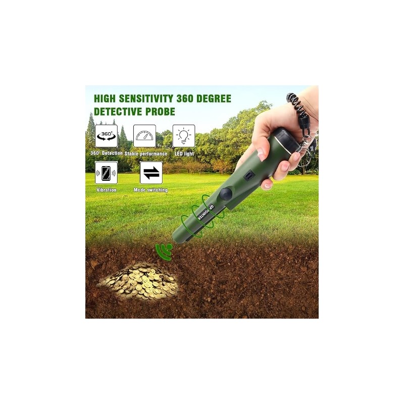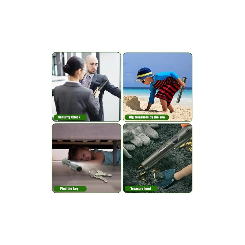 Detector de metales manual. Dispone de un radio de deteccion de metales de 360 grados con una distancia de deteccion de 5 centimetros aproximadamente. Dispone de indicador de luz LED y alarma para avisar de la deteccion de metales. Valido para buscar oro, plata, monedas, etc. Valido para registro de seguridad en puertas de acceso, deteccion de cables y tuberias, etc. Funciona con una bateria de 9v de larga duracion. Modelo impermeable resistente al agua IP66.