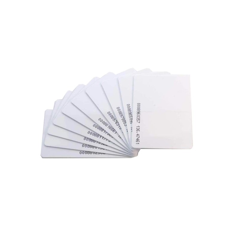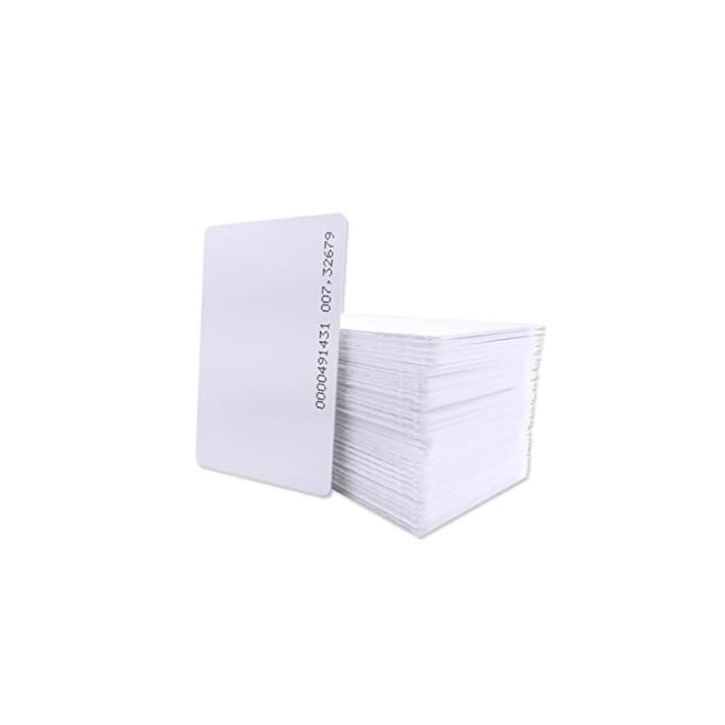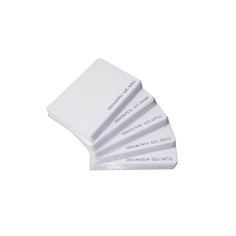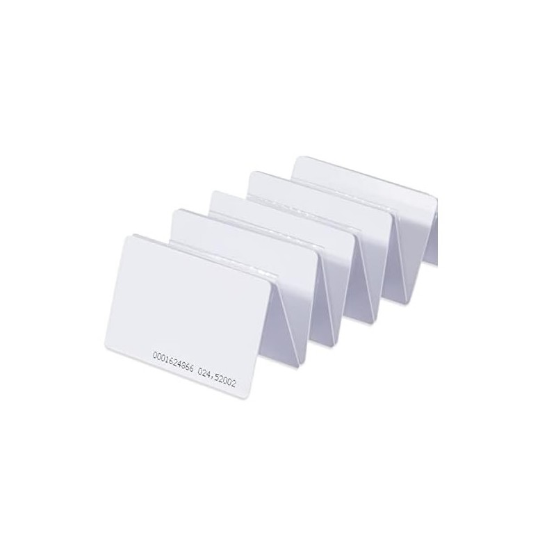 Tarjetas de acceso llave inalambica RFID transmision compatible EM4100 frecuencia 125KHz. Tarjetas para apertura de puertas, control de acceso, autenticacion de identidad, etc. Compatibles con transmision EM4100 / TK4100. Frecuencia 125KHz. Material PVC. Tarjetas de solo lectura numeradas con numero de identificacion unico de 64 bytes. Compatible con Arduino. Incluye 30 tarjetas de acceso RFID.